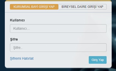Not: "Kurumsal Bayi Girişi"ni sadece yönetimler kullanabilir. Daire sakinleri yönetimlerin kendilerine verdikleri bilgiyle Bireysel Daire Girişi"nden giriş yapabilirler.